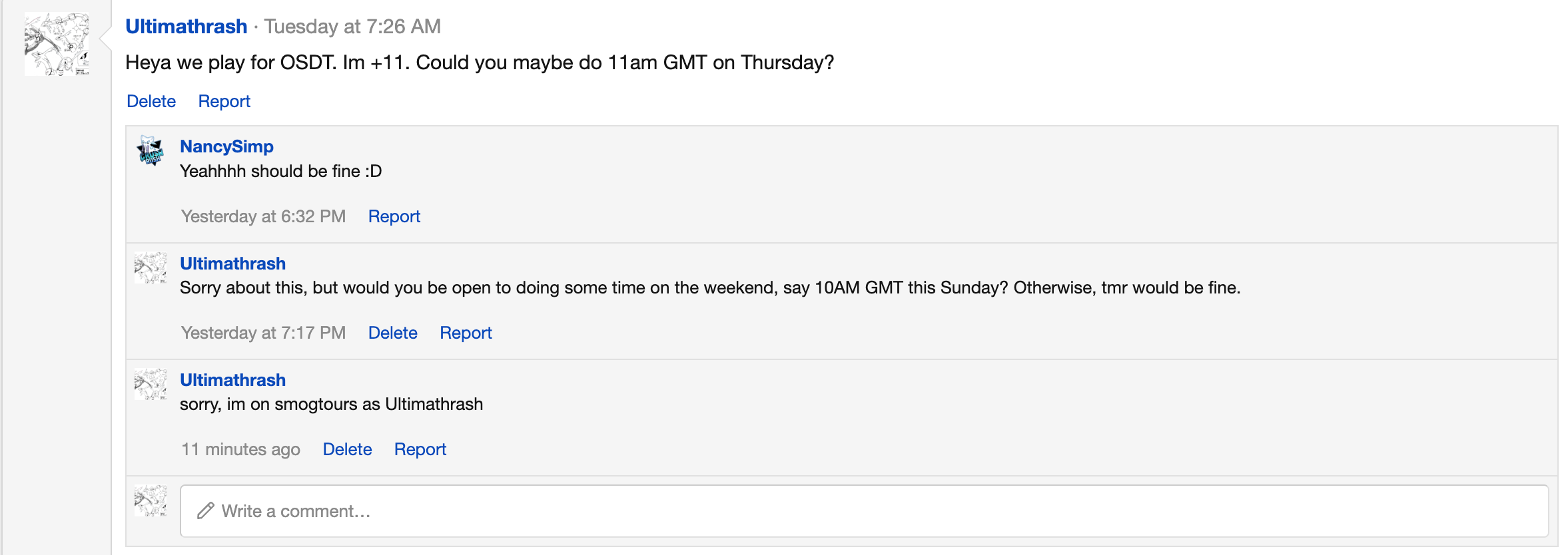 Calling Act, opponent hasn't been at the allotted match time after 40 minutes and hasnt been online since yesterday.