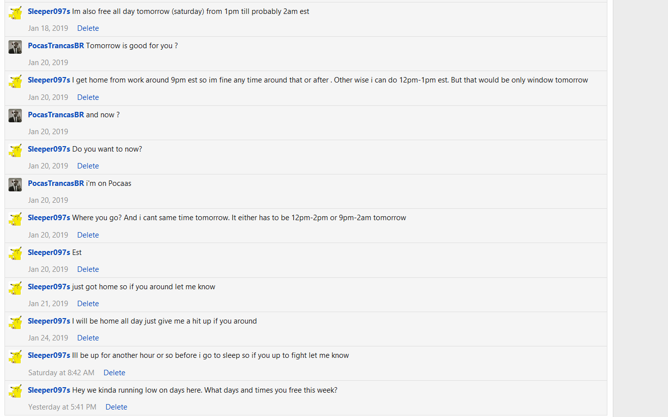 opponent scheduled for thursday the 17th, then (an hour before the scheduled time) abruptly rescheduled to the next day. opponent then proceeded to miss the second scheduled time, and didn't log in ever again after that