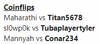 There is still a couple hours to deadline so if you've scheduled to play last minute, go ahead and finish your series. It shouldn't happen, but if I coinflip against you and your opponent doesn't show up at the scheduled time, just PM me and we'll get it fixed