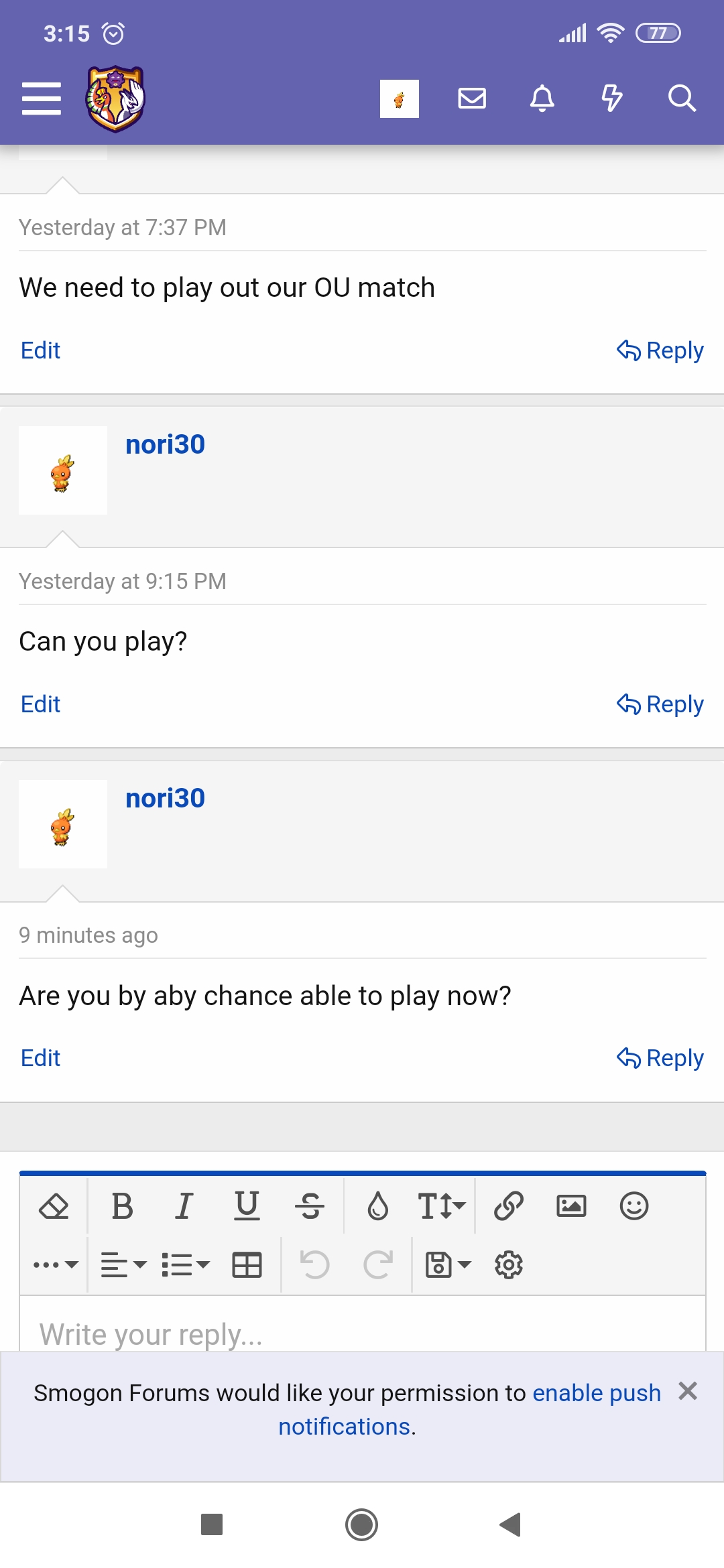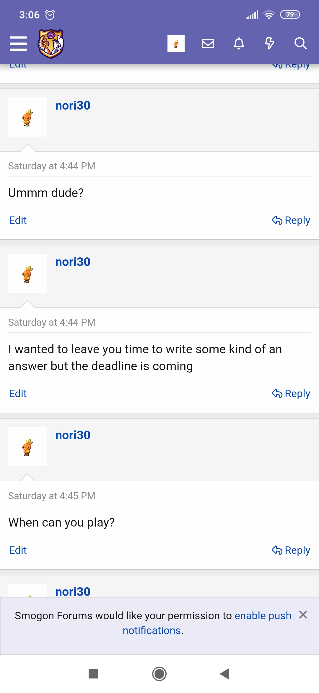 You have 24 hours to let me know if you scheduled via Discord, or to make contact with your opponent. If you do not, you will be subbed out tomorrow night.
