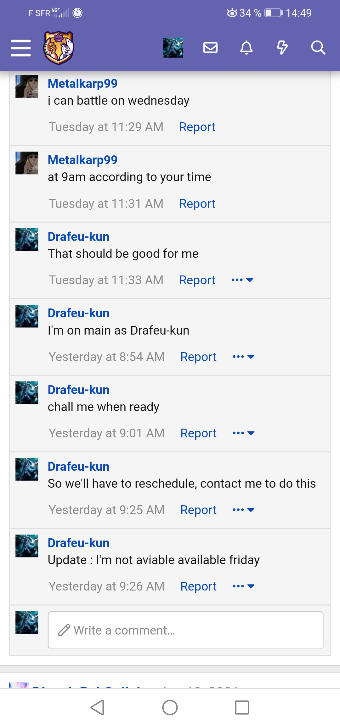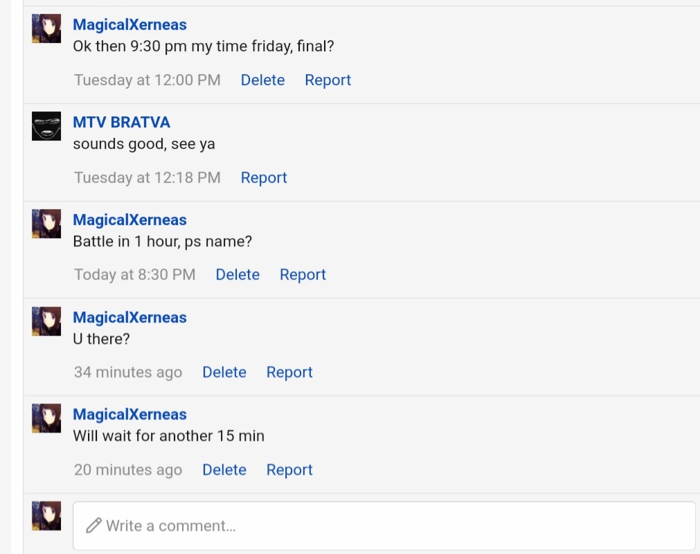 Opponent didn't show up on scheduled time (9:30 pm +5:30 gmt), waited for extra 30 min. Proof on their wall and a screenshot as wellView attachment 311770