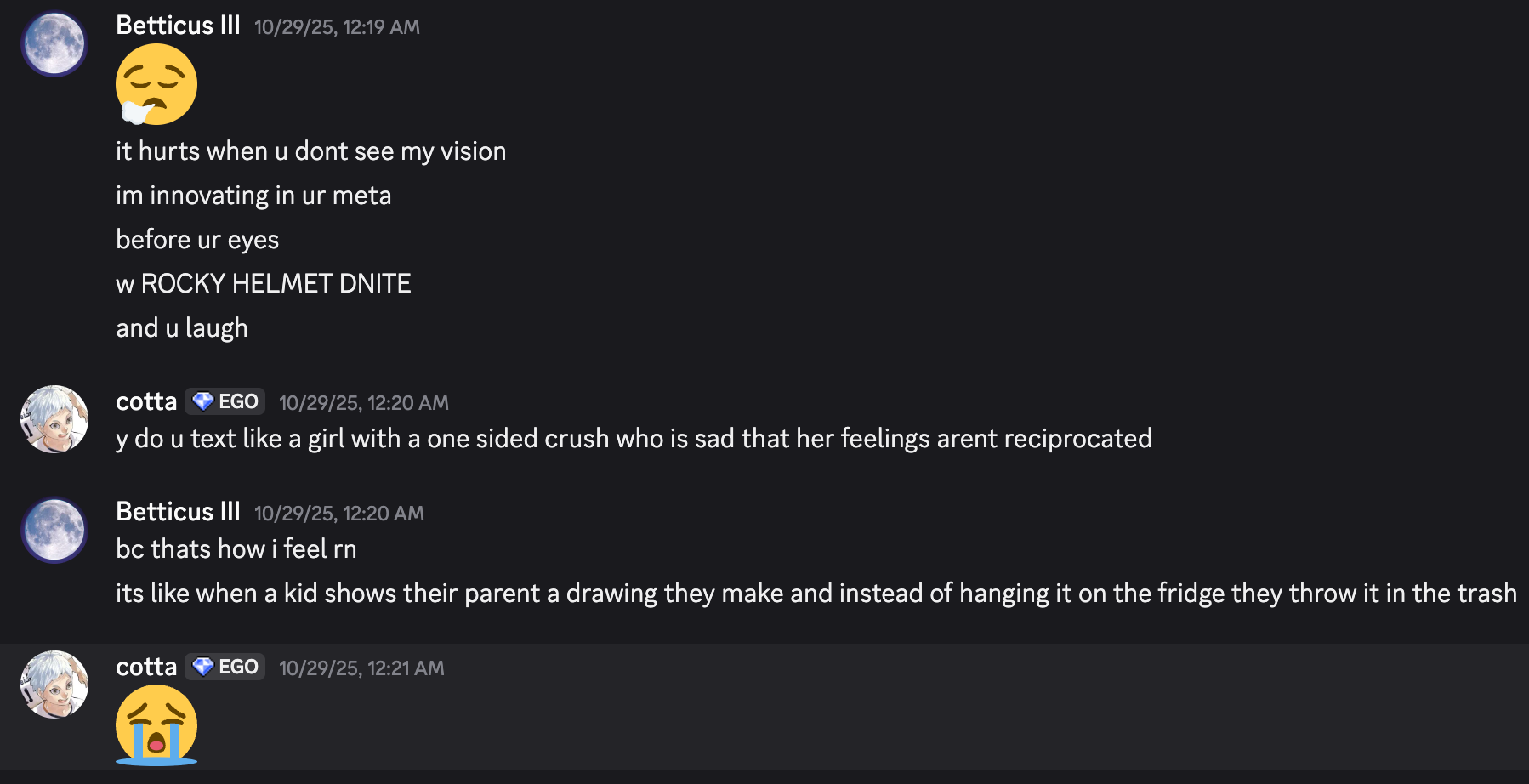 I can't believe cotta dodged a killer two OM(x)L tours in a row by throwing his teammate into the meat grinder.