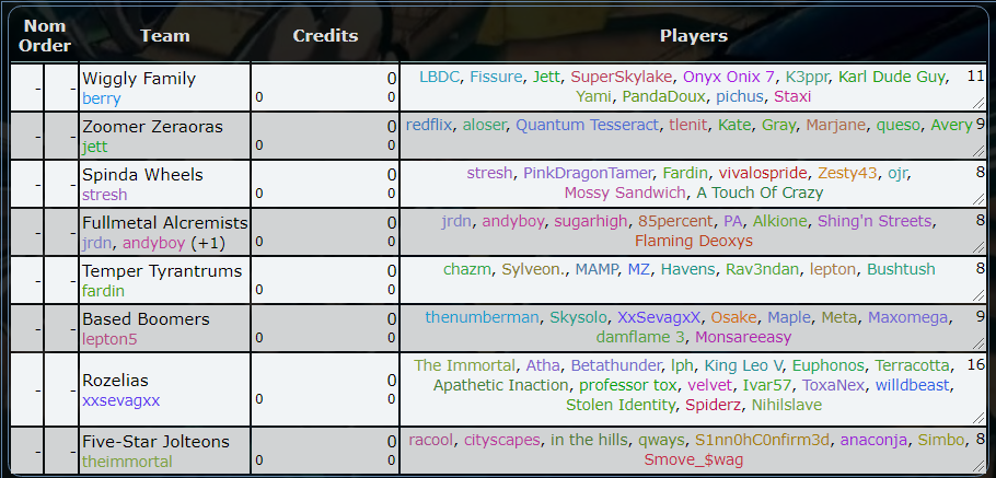 Aethernum: Solid player, and builder. Would be valuable team support via testing and building. Can be a pinch sub as well if needed. Good at not throwing games.
