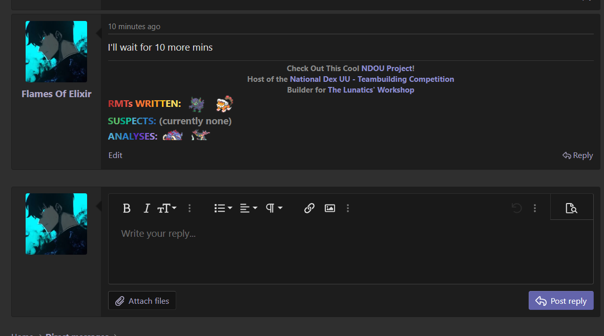I wrote on my opponent's wall on monday, and he reacted today, last day of, when I'm not available. I don't believe I should be punished for that, but I respect whatever decision.