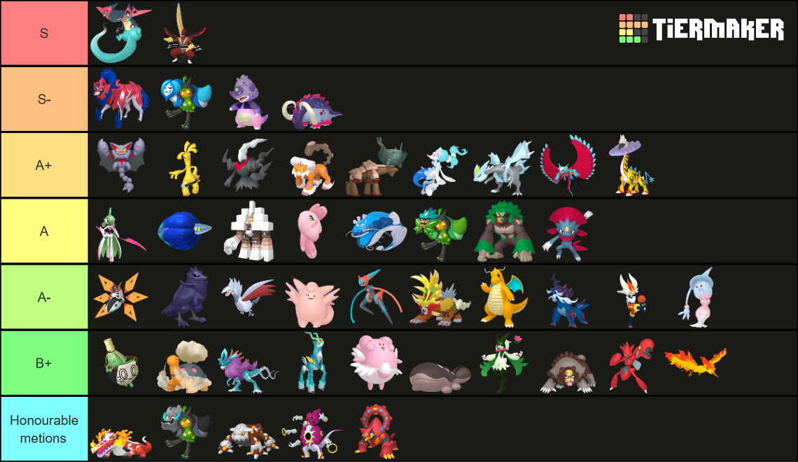 Here's my personal rankings, yes, i know a few controversial placements here and there but this is mostly based on the main rankings and how i feel about the mons myself