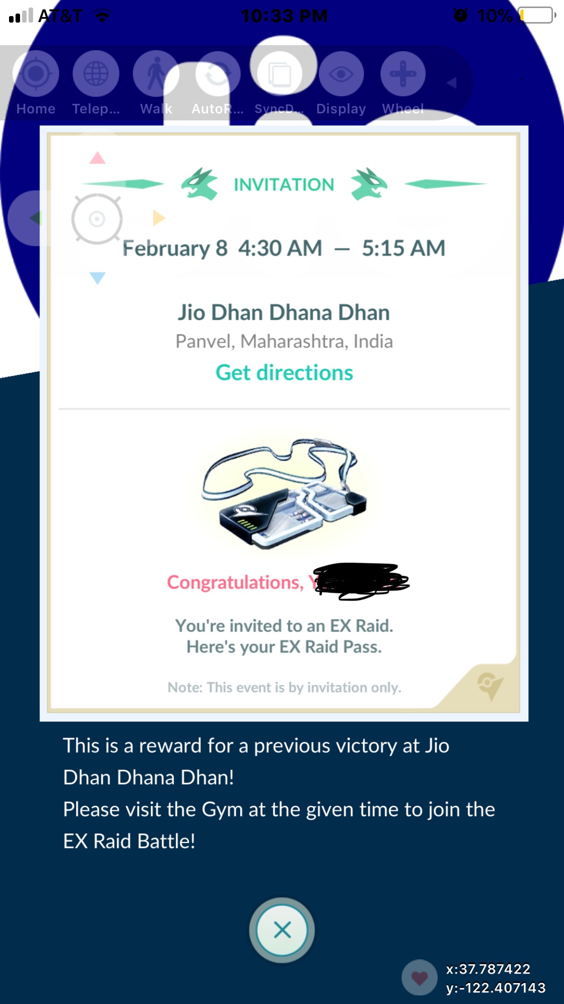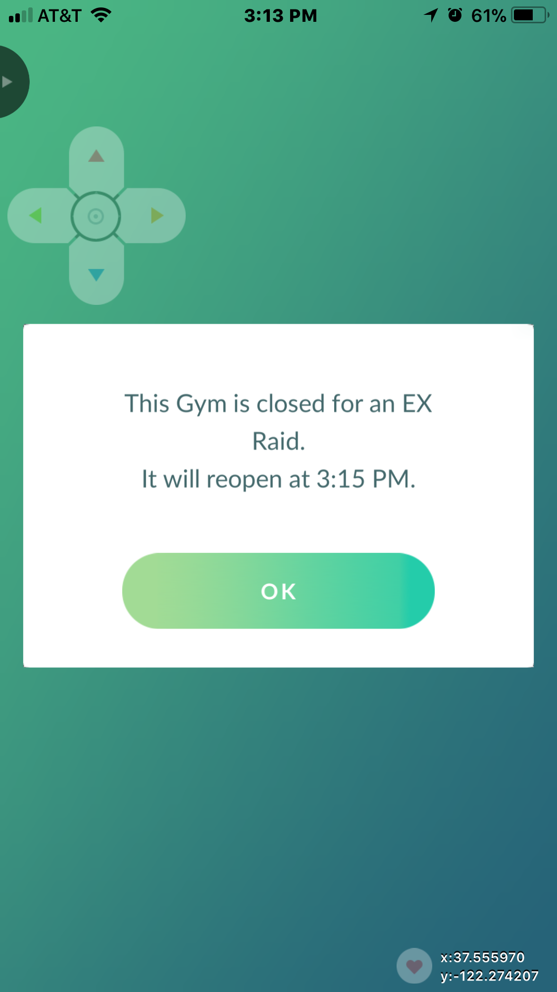 P.S. First time I saw this. Looks like it will notify you of another Ex-Raid (even including when you are not part of it), so that you cannot even spin a gym. Lol he Gym is literally local so I now know where to Ex-Raid: Amazing! Must be god saying “For all the effort and sharing information here is a place you won’t even need to spoof!”