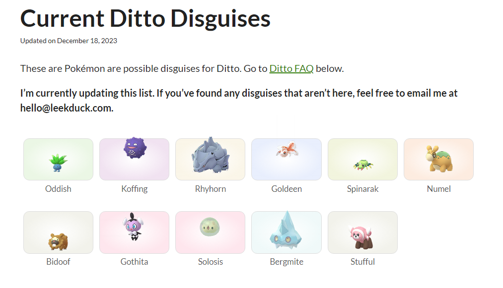 That's the one I found from the article (actually it was missing a few here), thanksMay I ask what the list of Ditto encounters you found was and what they dated it to? Leekduck last updated the disguises in mid-December post Adamant Time and has the following from this image. Hard to tell if the disguises changed or just been rare because I tend to fast catch so I miss which catch was the Ditto if I spot one later