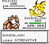 A wild Raichu doesn,t let Articuno escape and damages him twice with Thundershock. Second hit is crit and Articuno survives in red before I switch Sandslash in and escape.