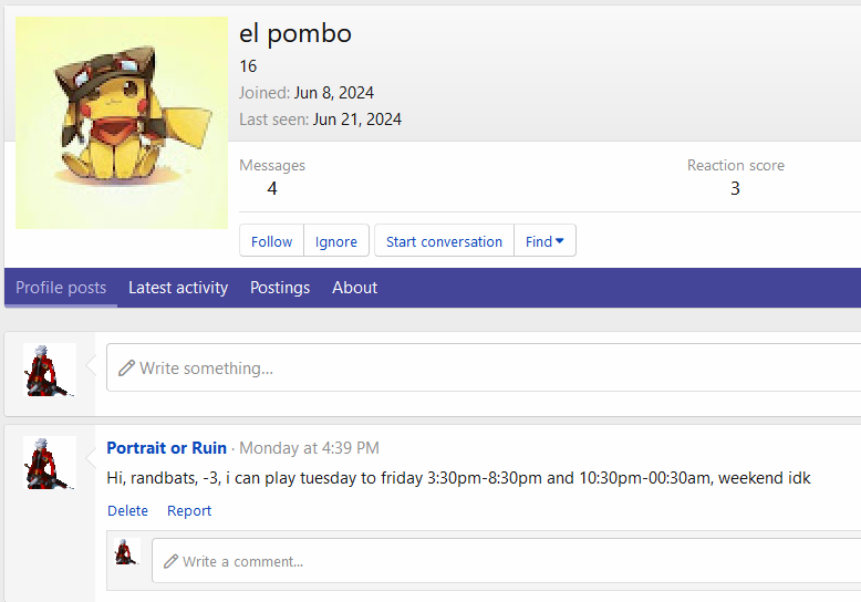 I missed a battle with my opponent, Lyna, due to spotty wifi on Friday and have been looking to reschedule a new date. However, they've not shown any activity since then. So I guess I'm calling act