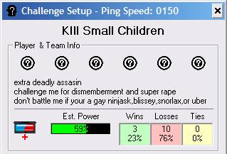 I think it's pretty famous by now, but does anyone have a link to the BattleNet (or maybe it wa Shoddy?) of that guy asking for a battle, but then posting a very, very long list of stuff he doesn't want to battle against? I remember a few friends posting it when I was a kid and it's pretty nostalgic to me now.