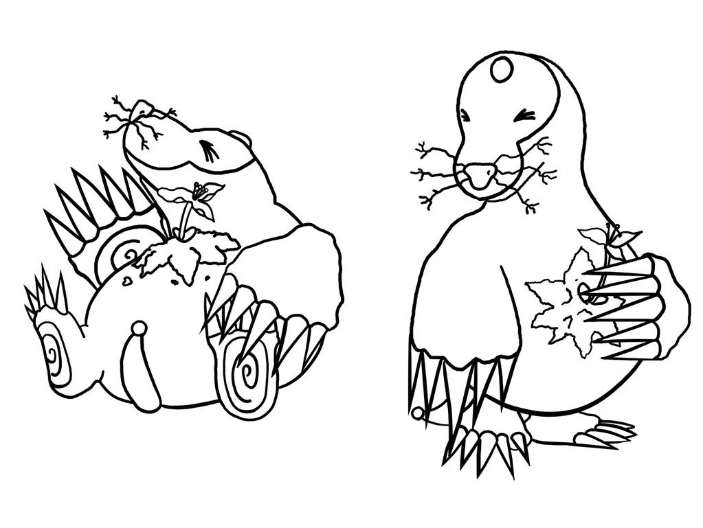 My fourth design for CAP #4 was a Mole type create with poison flowers growing on it, again to keep with the Poison/Ground-type theme. People were saying that a utility Pokémon shouldn't look so scary and offensive, so I tried to tone it down a bit and make it more like the regular "cute" utility Pokémon we usually see.