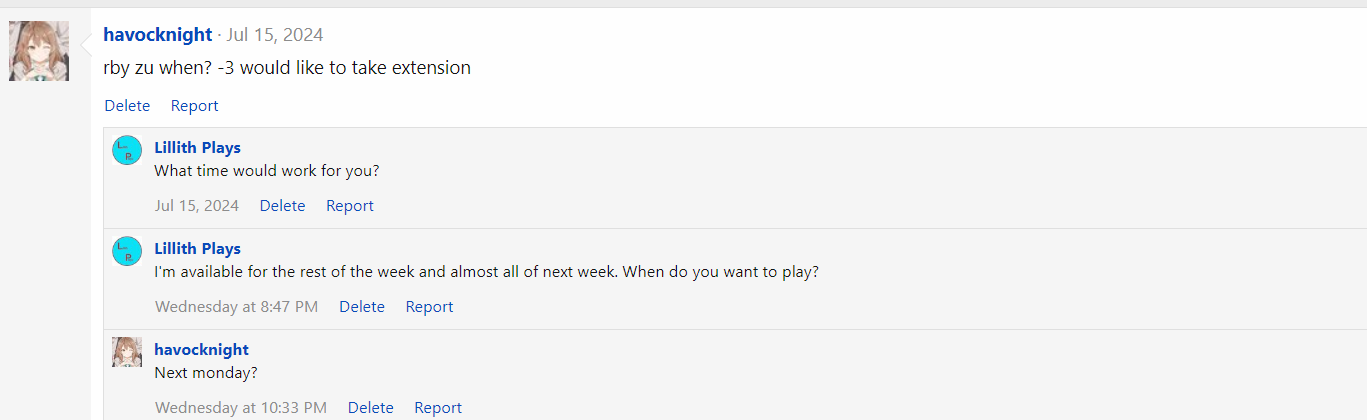 Never mind, dropping from tour.havocknight said they would ask for an extension. You can see that on my wall. Given that they specifically scheduled it past the deadline I feel that I should be given an act win. I didn't know to call an act win at the time because havocknight's messages led me to believe they had requested an extension.View attachment 650594