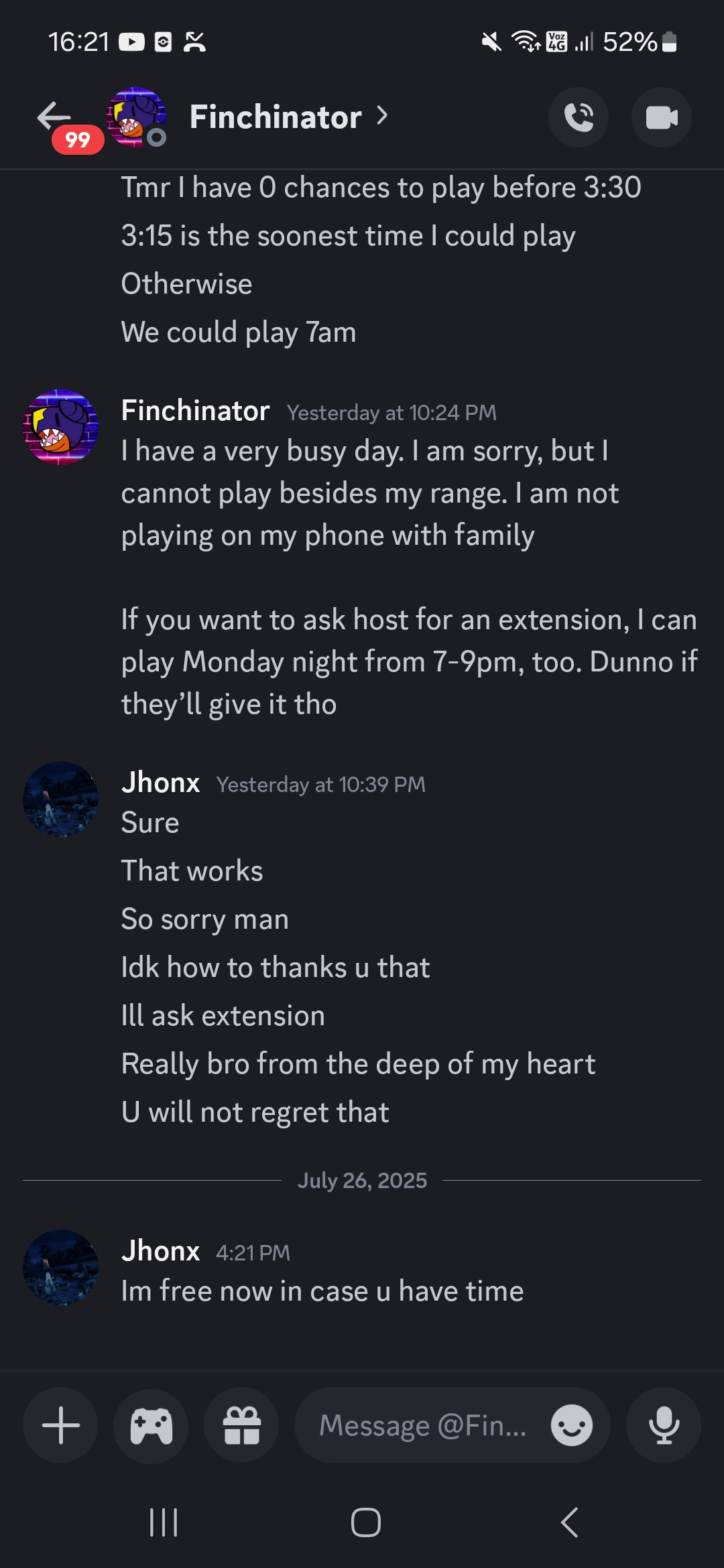 EDIT: they also messaged you within 30 on PS but you were offline.