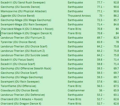 Things that stand out: Lando's EQ, Tran's Magma Storm (not so much since you can't do much to it in return), Ash-Gren's Hydro, Specs Koko's tbolt, and Gengar's Shadow Ball. Specifically for this set, you seem like you want to be sent in, survive a hit while you're setting up a Calm Mind, then survive another hit while you pain split. If an attack does under 59.9%, we can eat at +0 and recover at +1. That range is: