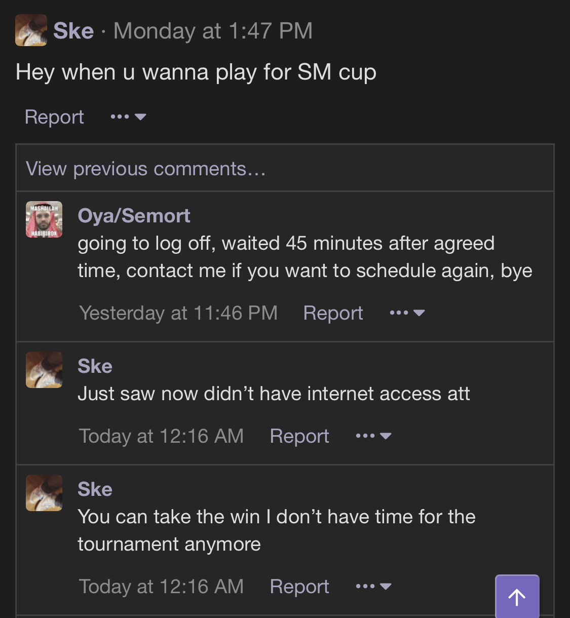 Ming549 heat ran NUPL Champion Jun 13, 2024 #38 calling act, waited 25 min after opp missed the agreed upon time, opp wanted to schedule over disc so attachings screens for proof