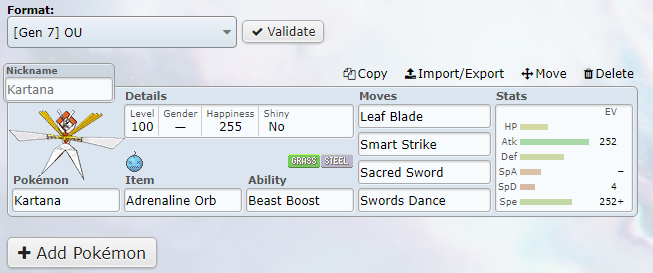 EVs: 252 Atk / 252 SpA / 4 SpD