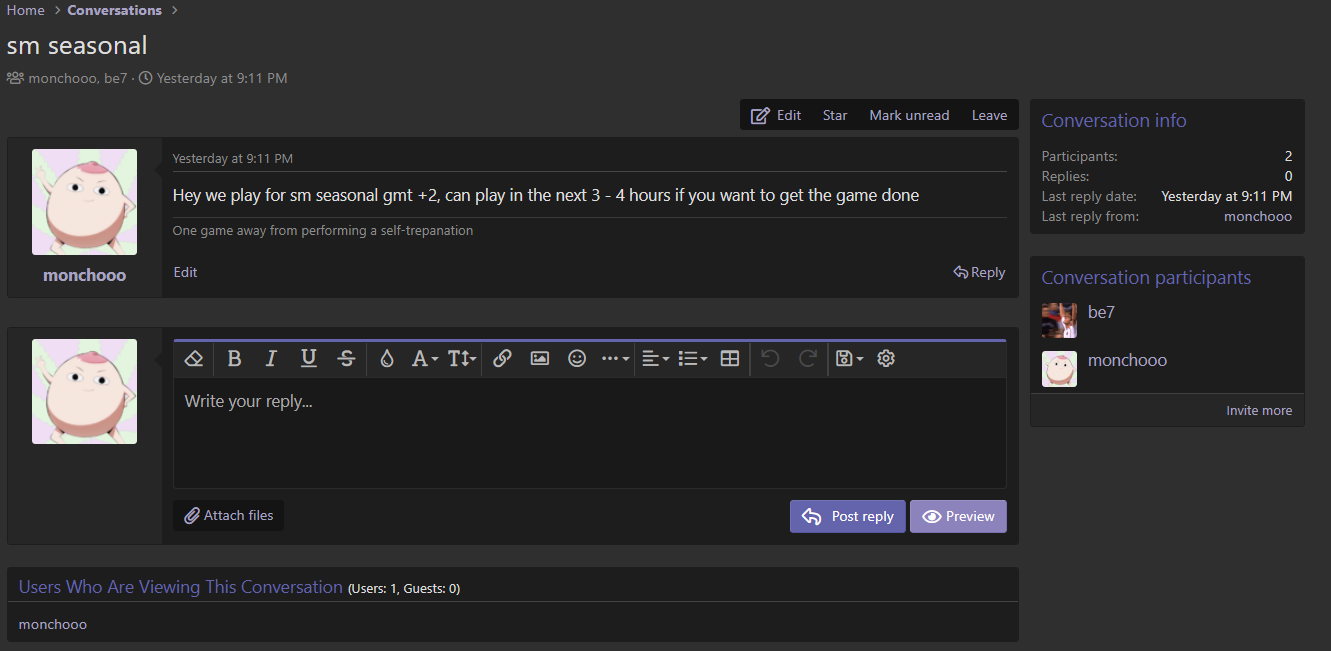 Didnt see tag for some reason and hadnt realised round was up until sunday. My opp never messaged me. I did today via dm since his wall is locked but he never responded