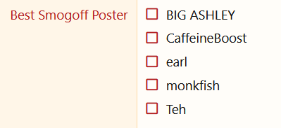 I don't even know why I'm nominated for best PS room auth (Atlas). I'm not even that good and it feels so weird being on the same list as everyone else. They seem like they do so much more for their respective rooms (I mean opple is like a b-global staff at this point with the amount of authed rooms they're in). Thanks for nominating me, I guess...?