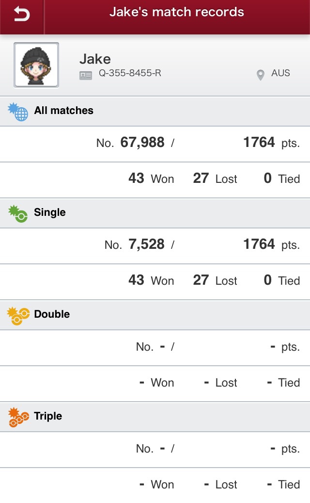 Here are mine. Let's not talk about that rotation rating. I peaked at 1,722 and it was, literally, all down hill from there. I stopped playing for quite a while to focus on doubles and triples. They're pretty different headspaces to be in. My last night especially I went for a string of matches that were nearly all losses. Singles in large part consisted of me messing around with various silly ideas; I never tried to really ladder on it/keep track of its score. Doubles and triples were each played with only one team (as in one team for each). All in all, I'm pretty pleased.