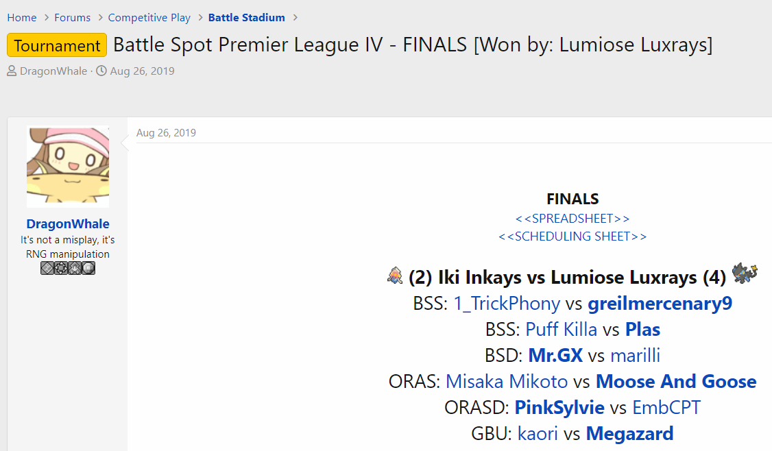 I'm not sure if Sam is purposefully setting up some sort of villain arc this tour but it the people that I've seen comment on the draft pointed that out. Sam and Luke's roster could either pop off or flop really hard, which is exactly why I've placed them in the middle. Asuya had a solid NPA, ChosenFuture is one of Australia's finest, top 4'ing two straight Oceania ICs, and Redsilver is a regional champion. PrimitiveVGC has come back from a bit of a hiatus and has been running a really interesting blog while getting some strong results in Mt. Silver tournaments. Memoric is a DOU main who dabbles in VGC from time to time, I watch the guy play frequently enough to know he's got the fundamentals so it all comes down to whether he can grasp the meta. Eeveon7 and Oriol Plaza are newer names to me but I've seen them around in the community enough to know they're probably decent in gen 8 and can adequately start or support. Helios of Sun and Evelyie are new, unproven, and ambitious forces that have been around SmogonVGC for the past few months, I'm very interested to see how they'll do. JagSamurott is one of the most successful unconventional builders which makes him a huge threat in a team tour. The villains round out their list with LC tier leader Coconut, who told me they have some VGC experience, and mystery man SlushiW. Should be an interesting tour for the doggs.
