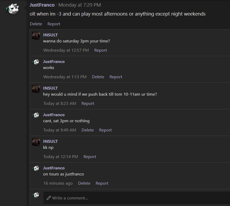 I just want to say that I hate this culture of counting the seconds to claim your precious act win. There could be any number of factors that causes a person to be slightly late, but players like you don’t give a shit. He could’ve been stuck in traffic or even coming home from the ER, but you wouldn’t give a shit.