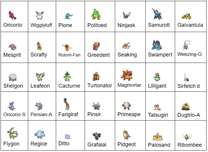 This is the pool of Pokémon that are currently legal, however more likely than not by the time you read this this will be out of date, as we'll have rolled next months 35. For those curious: Weezing-Galar, Regice and Oricorio-Sensu are considered to be the best Pokémon, however everything here has a legitimate niche, even Seaking and Shelgon.
