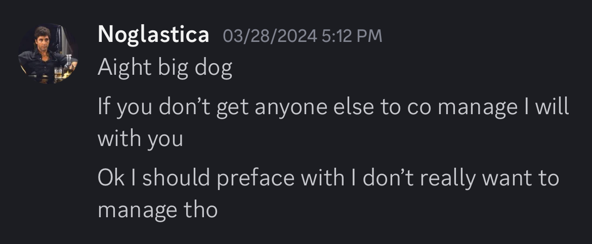 General Managers are chosen largely on a subjective opinion of the Tournament Hosts as to who they believe would be fit for the position. Being fit for the position includes the knowledge of excellent battlers in the community (for fielding a competent team), having above average activity on the forums, Pokémon Showdown and/or Discord (in order to ensure that you don’t abandon your team), as well as possessing a necessary amount of “gravitas” (If you can’t make a player do what you tell them to, such as play an undesirable metagame, you’re not going to make a good manager).