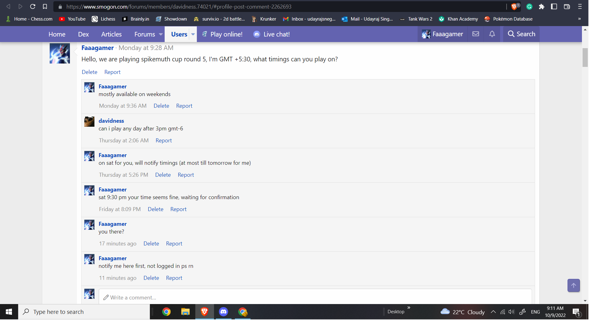 The opponent replied somewhat late, did not give any confirmation (or suggest any other time) to the time I gave them and was not online at time I had given.