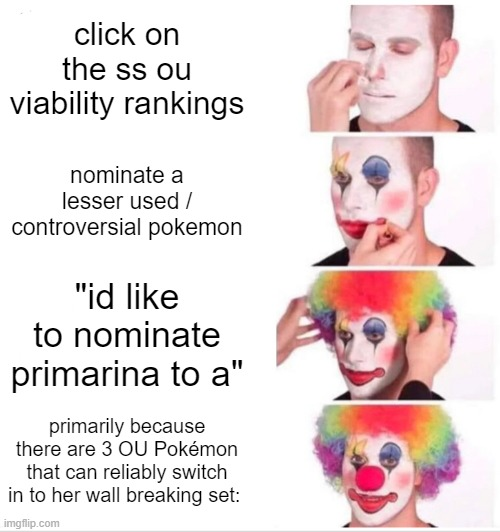 so i dont make this into an immediate one-liner, it faces some very sheer competition- i would rather move pokemon with sizable utility which ofc has many definitions / a beneficial impact on the metagame. while i don't believe primarina doesn't have any of that, i believe it should stay in the b rank.