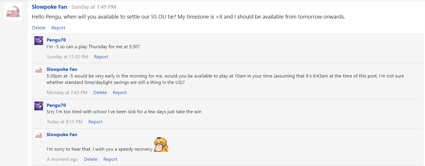 Some players scheduled privately for their Round 1 game with the consequence that our host thought they weren't in contact with each other / they were inactive and he proceeded to sub them out and make new pairings with new subs. Some of the subbed out players actually scheduled with their opponent and eventually played their games without knowing that they got subbed out, being surprised to not see their name in any of the Round 2 Pairing.