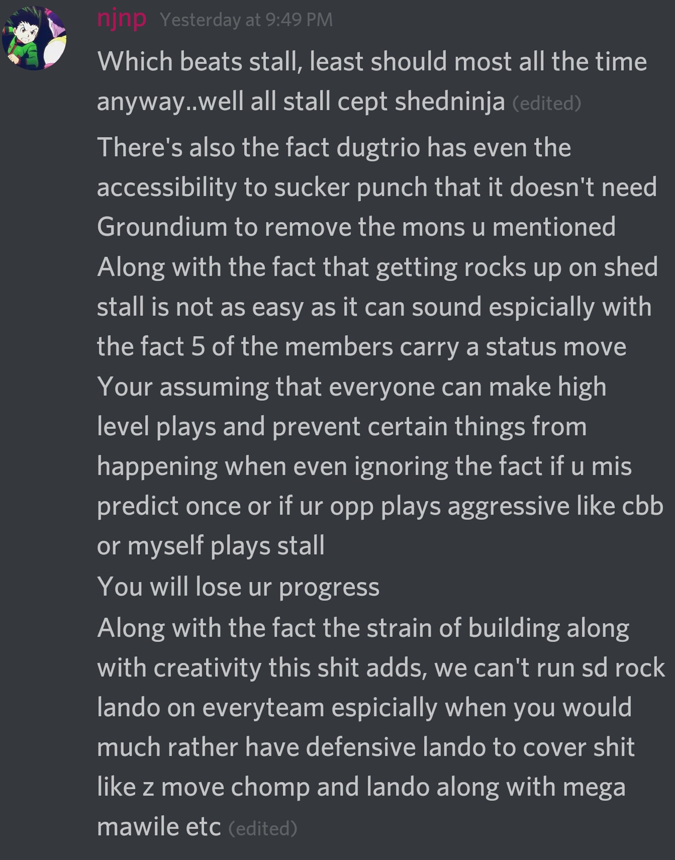 We're not far enough into the metagame to really make a call yet. However, current evidence implies heavily that Dugtrio isn't inherently broken, especially when compared to previous metagames, and likely not the Pokemon at fault if stall becomes an issue in the future. P.S. Less subjectivity, more objectivity.