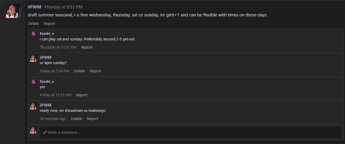 Messaged you on disc, I think there was some tz confusion ;_;calling act, my opponent is offline on smogon and discord and it's been over an hour since the scheduled time