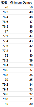 - To qualify for voting, players must reach 80% GXE with at least 30 games, decreasing by 0.2% GXE for every game played (down to 76% GXE with minimum 50 games). There is no upper limit for how many games you can qualify with.