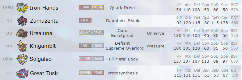We know for sure what is UU for instance - there is a quantifiable stat that goes up and down and there isn't need for much specific/manual tiering action to keep things in order. OU doesn't have that upper-level breakpoint and there should be something for sure. I am of the opinion that a BST upper limit is an easily applicable example. Zamazenta-H's 660 BST is fine for now only because there are abominations in the tier that can keep it in check, but it even existing in this tier is a clear indicator that the power level is INSANE this generation (with the side-effect of knowing Zama will break the tier a new one once the power level goes down). Sucking at Ubers (or UUbers for that matter) should not weigh much on whether something goes up or down.