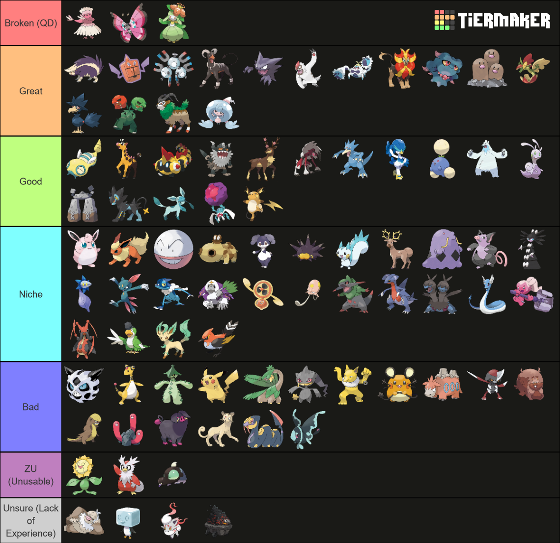 Due to subjectivity with tiering, people will have differing opinions on where Pokemon land on the viability rankings. In lower tiers, new meta trends can shape how the tier is played and how Pokemon are viewed as new, viable threats, or as strictly flavor-of-the-month Pokemon. In teambuilding, each person has an individual view on how certain Pokemon blend into the meta and carve niches for themselves in a dynamically shifting metagame. With this thread, Everyone can share their own personal viability rankings and provide some insight into their thought processes on where you think the Pokemon should fall.