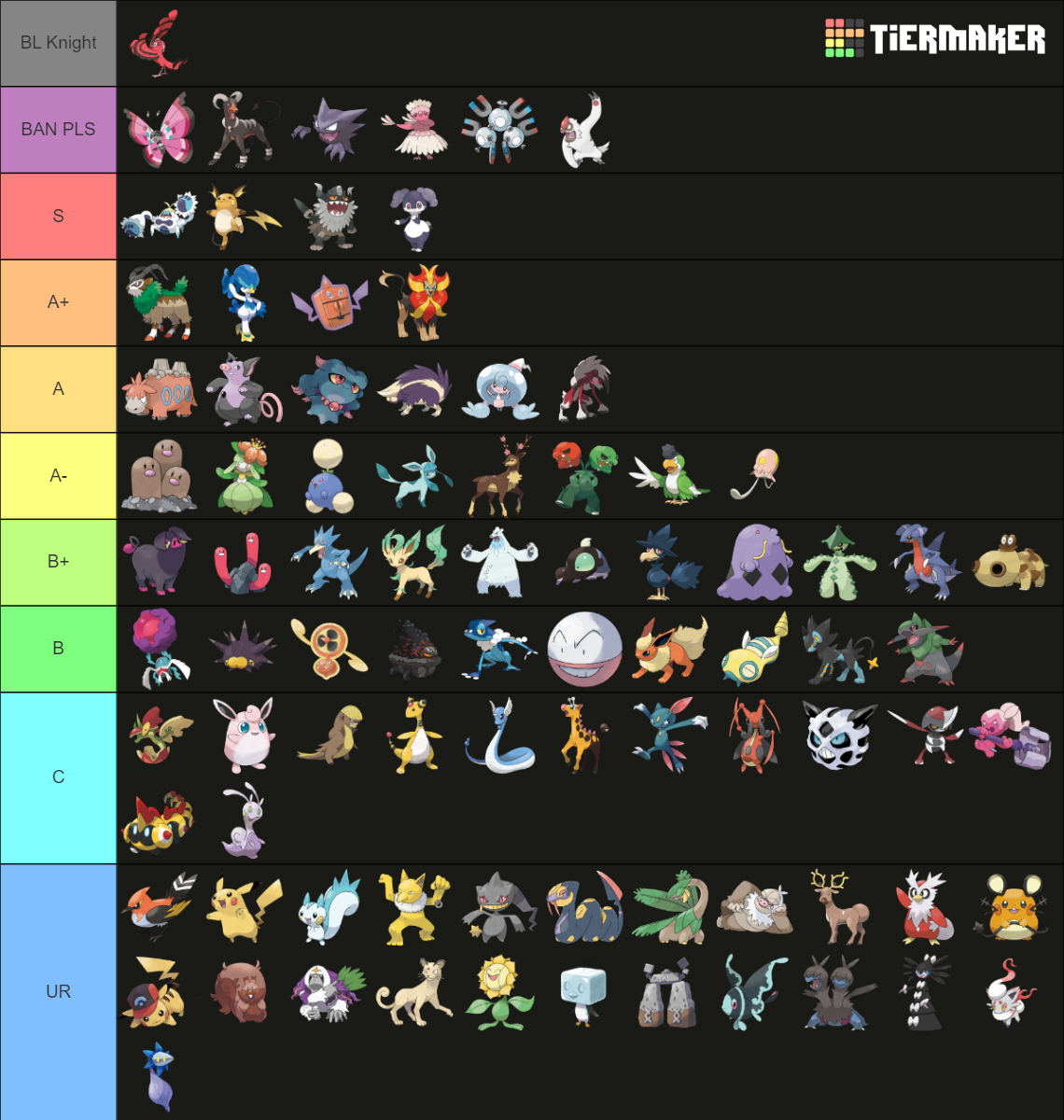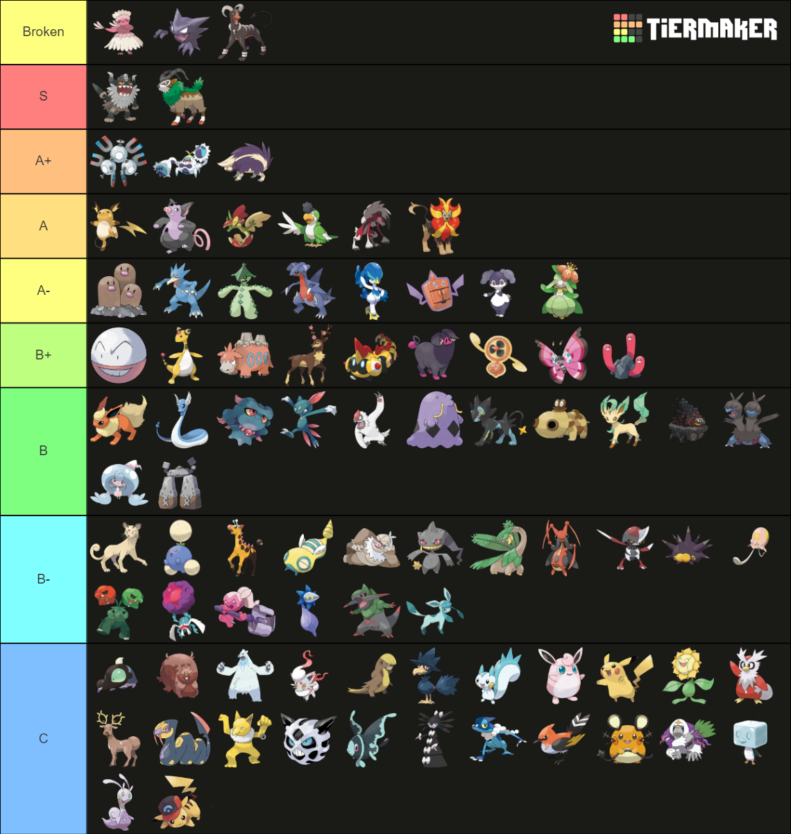 sneasel -> I've seen very few of them. I feel it could be higher than this, possibly even A/A-, but I haven't got enough proof about it and it's not a key part of the current meta (at least on the ladder).