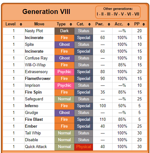 In similar fashion of Arcanine, you can pick up both 110 and 90 BP stab, 80 BP secondary, nasty plot (who needs X items?) and random quick attack as soon as you stone evo.