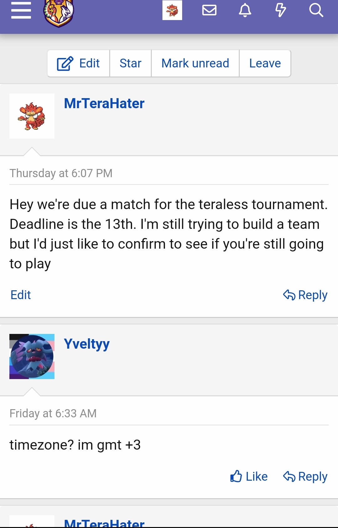 Gave all the wins asked but Bossaru's since they both missed scheduled time. Same applies for Melbelle and their opp.