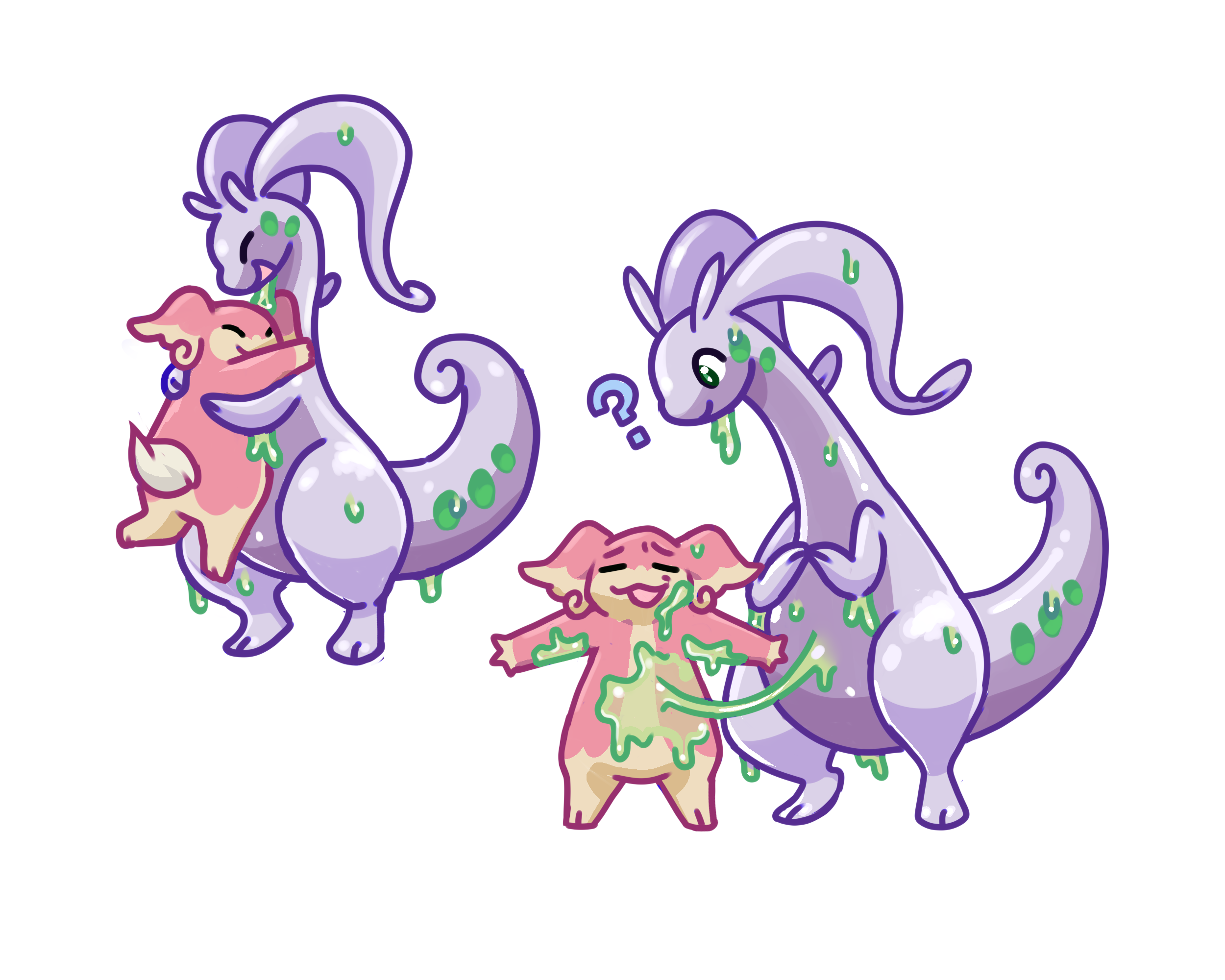 lmfao that's a great idea, or maybe not since audino's bashful expression is telling me otherwise. expressive poses there, i also love the clean shading esp for all the slime highlights!