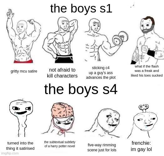 If you're disappointed by where The Boys has gone, I recommend The Suicide Squad (2021) which is a million times better than anything it's ever done (or Invincible, for that matter, although at least The Boys is enjoyable and Invincible is, barring one or two moments, flat-out awful)