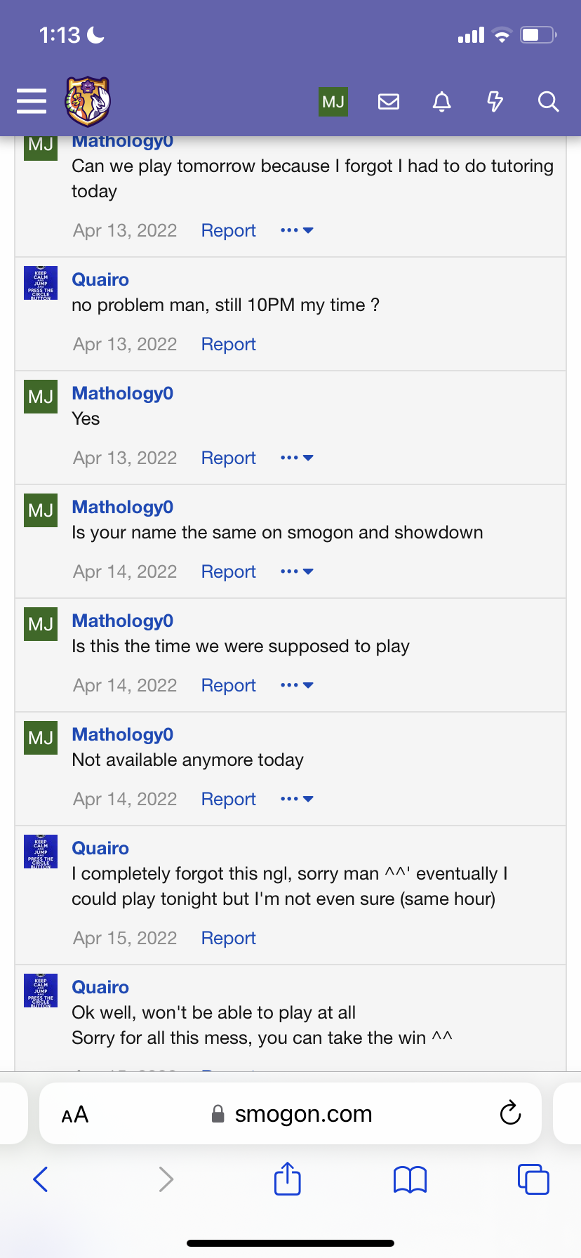 About playing on different servers: Tournament matches must be played on the Smogtours server. The Main PS! server is also acceptable if both parties agree to that. Other servers are not sanctioned by the TD team and playing in them might result in your game not counting. Protect yourself from that by playing in Smogtours, where we also have the power to recreate games that end due to DC's.