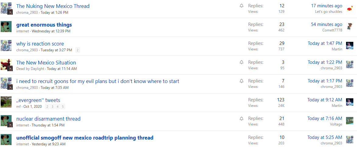 ok, so i figured there are probably more people out there who also want to join me in nuking new mexico. Because of this, for consistency and orginization, i have created this thread for my loyal goons and i to more easily strategize and converse. yes, i am aware this is far from the most secure way to do it, but cmon there's nothing anyone can do about my nukes! besides it'll be fun :3
