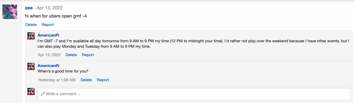Calling act. I scheduled with my opp last week but I was on a doctor appointment, so I couldn't play then we reschedule for this week and he never responded again