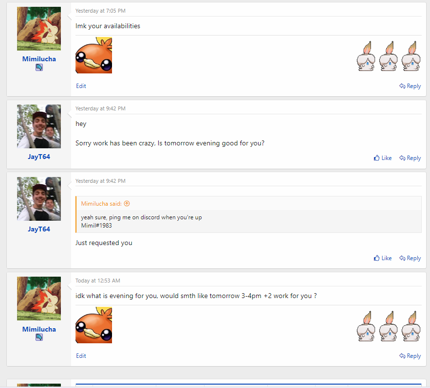 B3N99 May 8, 2023 #271 https://replay.pokemonshowdown.com/gen9uu-1860021086 https://replay.pokemonshowdown.com/gen9uu-1860029015 Won 2-1 but forgot to save the replay Sorry for the late reply, if you can't move me on bc of the replay thing thats ok
