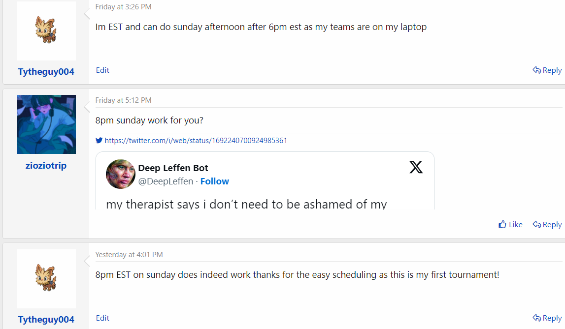 Tytheguy004 May 12, 2024 #118 Im calling act because my opponent has not showed up for our game at the time we said Tytheguy004 vs ZioZiotrip Attachments Screenshot (723).png 96.6 KB · Views: 56 Screenshot (724).png 40.9 KB · Views: 58