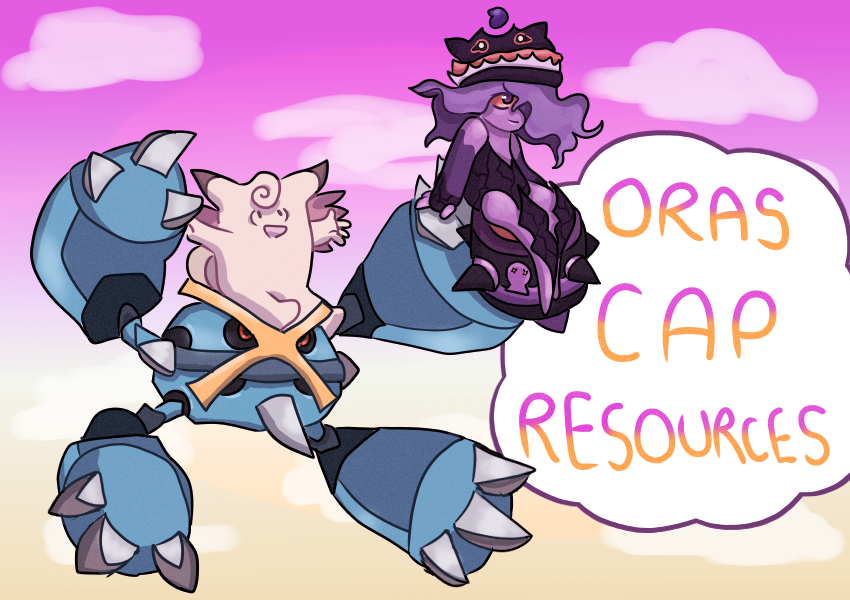 art direction: something with clefable, mega metagross, and mega crucibelle in the banner with text saying "ORAS CAP Resources". they could all be interacting in some way or they could just be in cool dynamic poses or something, frankly I don't have anything specific in mind so just take it in whatever direction you want![]()