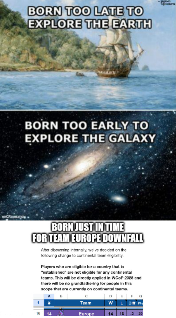 Good bye Team Europe, you won't be missed. A legacy of choking and forever 2nd place finishes. Maybe make another PR thread next year so you can handpick your All Star roster back :blobthumbsup:
