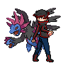Could i get one that is a gen 4 ace trainer (male) with a black shirt+jacket with a neon red stripe down the sleeves?, and blue pants, black hair with a red highlight in it? (also could you put a torterra on the left of the sprite and a hydreigon on the right? this is completely optional, do it only if you want)