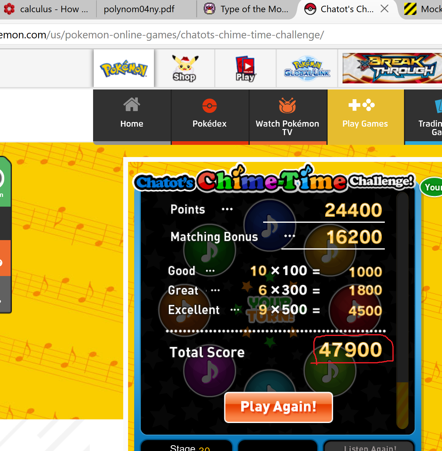 Thanks for your understanding! I wasn't trying to cause confusion or cheat; I just misread / misunderstood your contest rules. I've already retracted my Chime Time highscore by deleting the post. I look forward to having my Headbutt highscore beaten :)