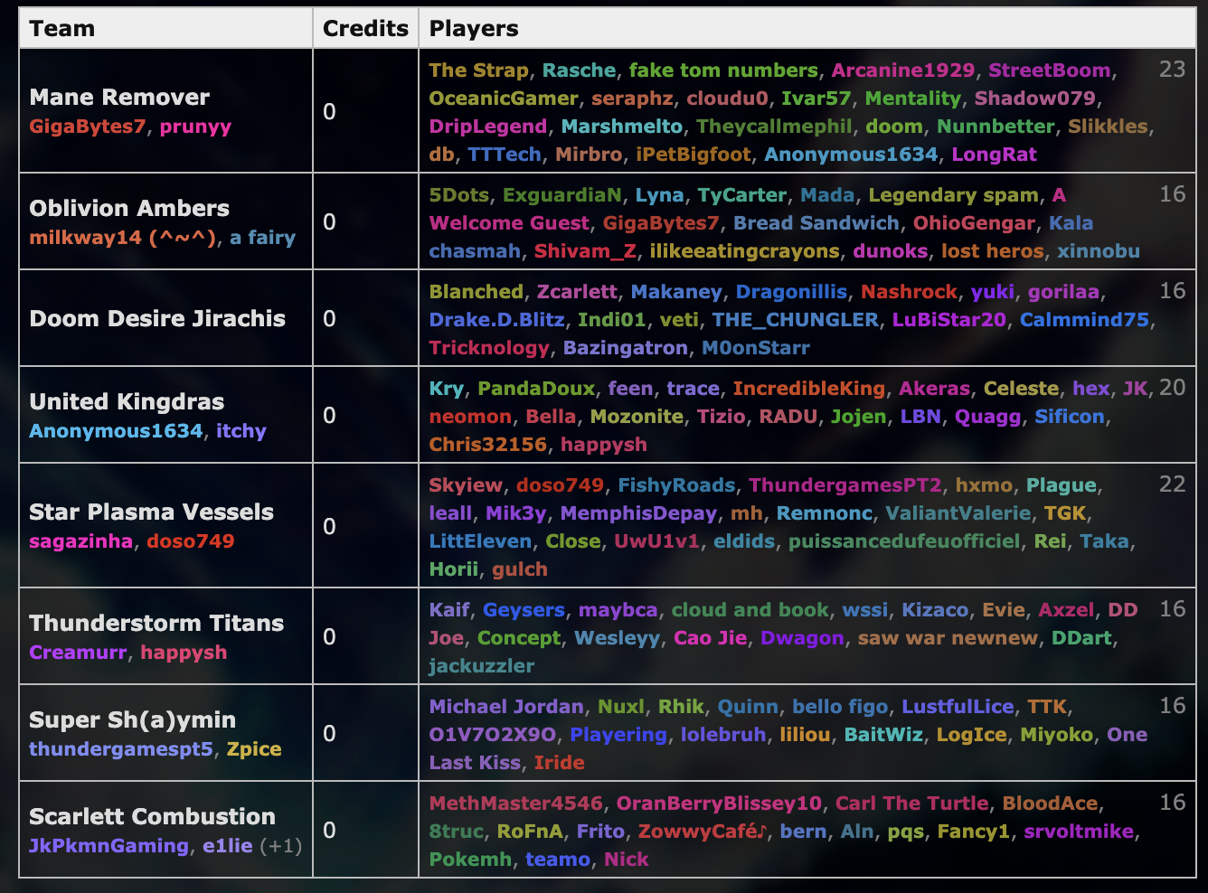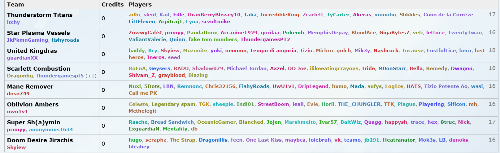 | LittEleven | 8000 | Thunderstorm Titans |